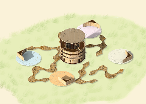 Une structure qui se déploie dans les jardins des EHPADs ou à proximité, composée de modules adaptés aux problèmes de motricité et de mobilité.